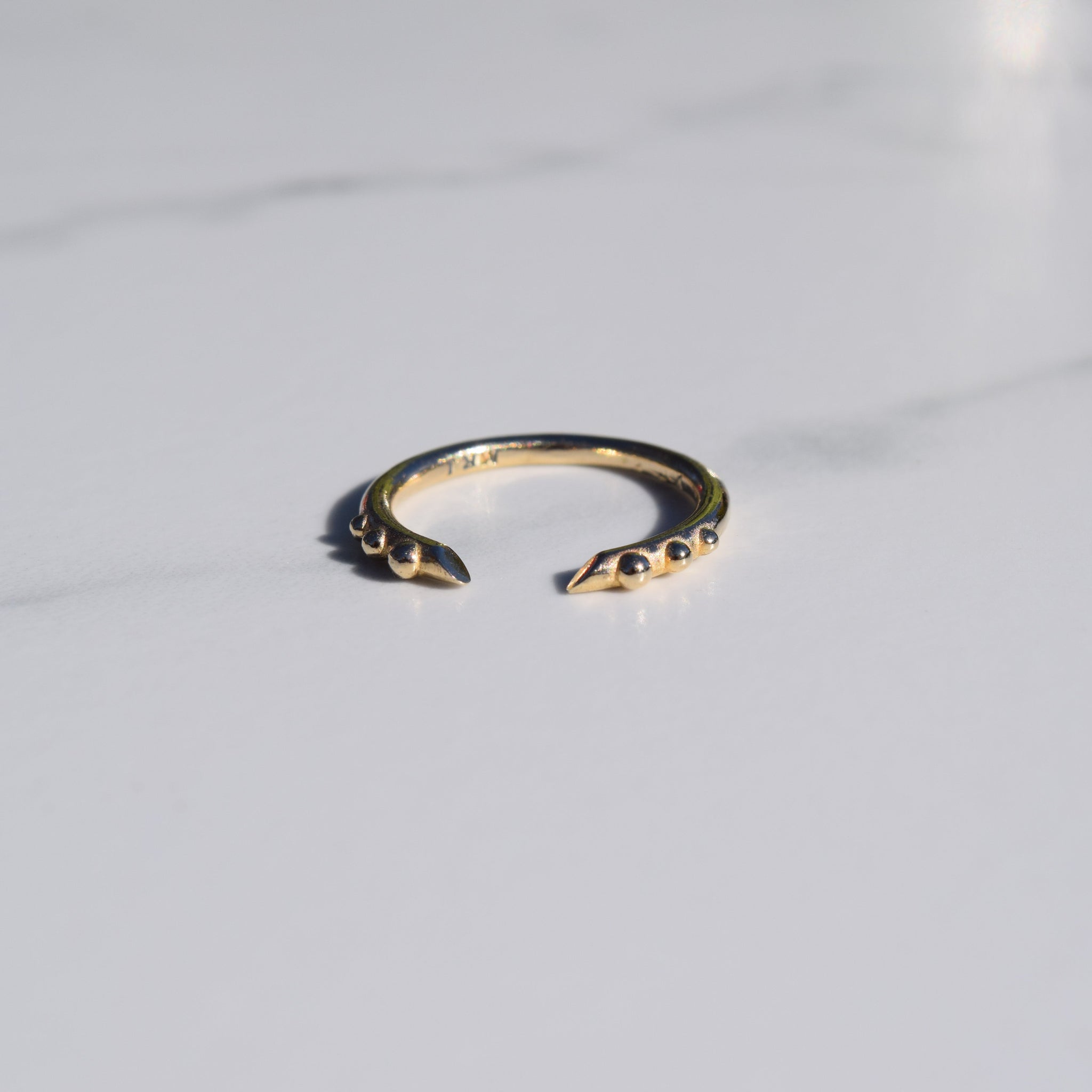 Introducing our Raíz Cuff Ring – a stylish fusion of classic elegance and modern swag. This sleek cuff ring sparkles with three graduated dots on each side, offering textured depth and incomparable shine. Precision-crafted in sterling silver, this ring radiates lasting brilliance and undeniable oomph. The graduated dots symbolize your journey, growth, or simply the beauty of progression, making this cuff ring more than just an accessory—it's an embodiment of your journey. Wear it solo for a chic and subtle look, or stack it with other rings for a powerful, personalized statement. Put on your Raíz Cuff Ring and express your story in style.